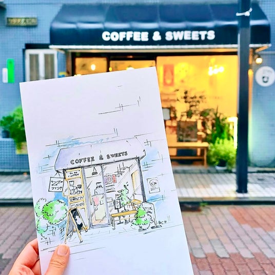 展示最終日にカフェの絵を描いてプレゼントしてくれました。現在もカフェ店内にこちらの絵を掲示しています!