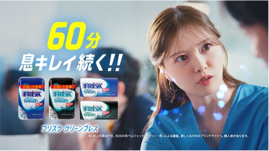 今回の新WEB CMでは、白石さんが遭遇する数々の人との距離が近い「こんなときどうする!?」場面で、「FRISK クリーンブレス」を口に入れ、息キレイで、自分らしく周囲の人とその場を切り抜けていく様子を描いています。
