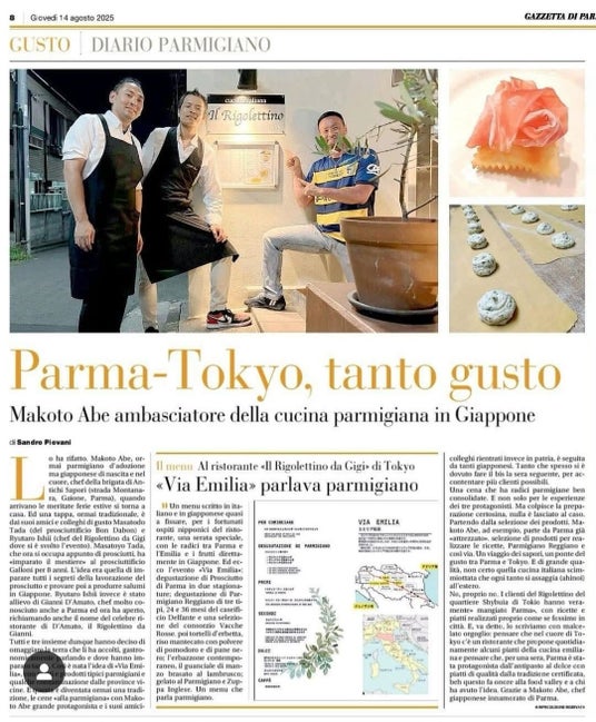 ニョッコ・フリットや現地そのままの料理をお客様が楽しむ様子はイタリア、パルマの新聞でも紹介されました。
