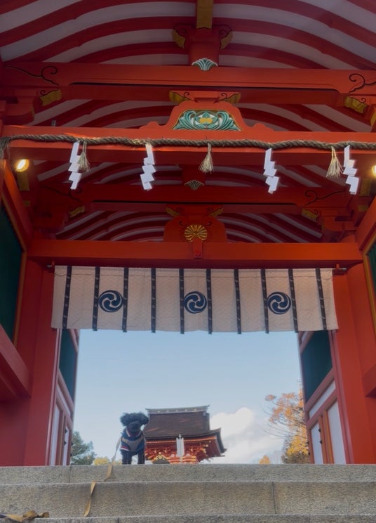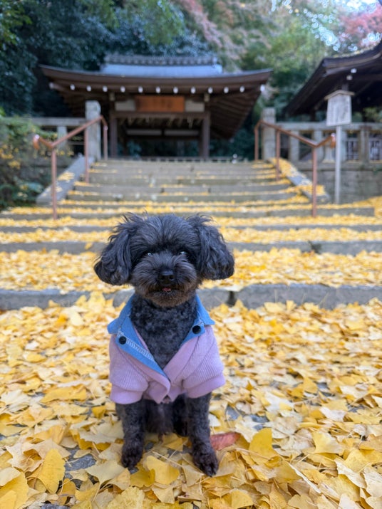 店舗から徒歩すぐの石清水八幡宮は国宝でありながらも、参道を犬と一緒に歩くこともできます。頂上までは約30分と気軽にハイキングが可能で、展望台もあります。さらに徒歩がしんどい場合はケーブルカーもあり、ケージがあれば犬も乗車可能です。他にも、桜で有名な背割堤も犬におすすめの散歩コースです。カフェでテイクアウトしてのピクニックも楽しいですよ。どちらのスポットも京都市内に比べ観光客が少なく、インバウンドもほぼないので犬のペースでゆったり過ごすことができます。
