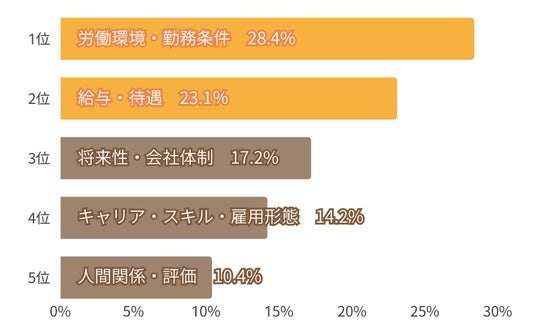 ・「労働環境・勤務条件」「給与・待遇」など、条件面の理由が半数を占める結果に。