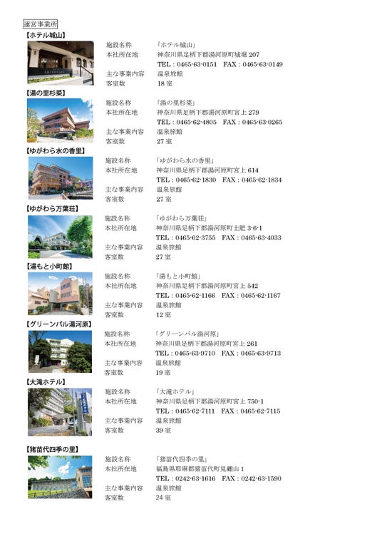 主な事業内容 旅館経営・宿泊施設運営業務委託・レストラン・旅行業・旅館経営コンサルティング