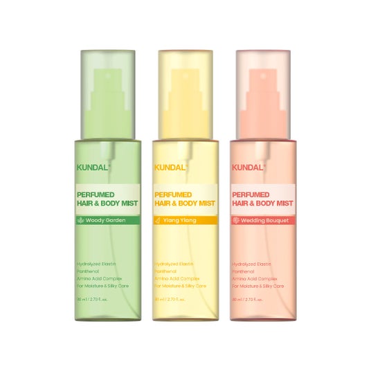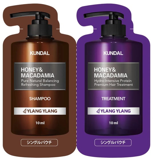 バイオレットミュゲの香りで、ダメージを受けた髪をやさしく補修し、必要な栄養と水分を補給します。さらに、クンダルの定番であるハニー&マカデミアシリーズのサシェもセットに含まれています。