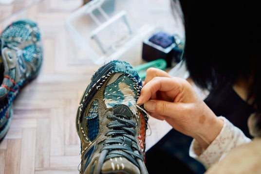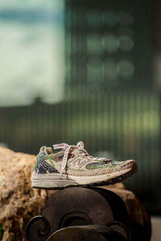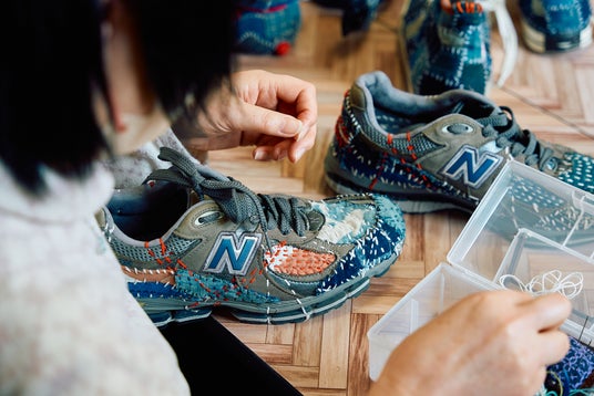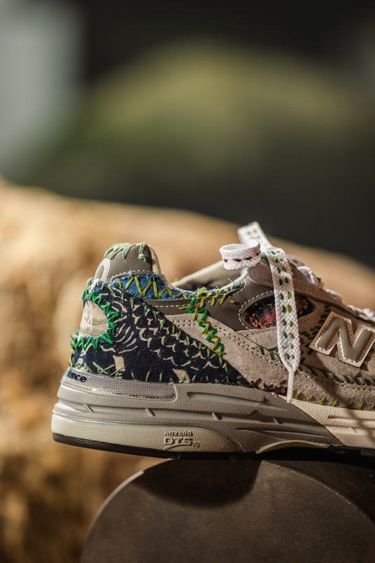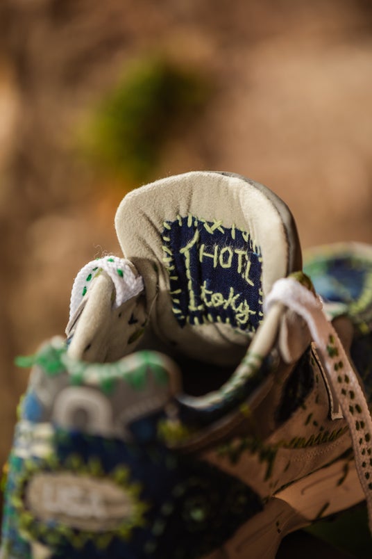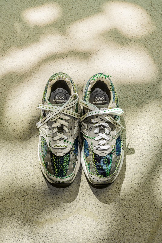本プロジェクトのために制作されたオリジナルスニーカーは、自然から着想を得た「森」をテーマにデザインされています。ベースには「New Balance 993」のグレーを採用し、SASHIKO GALSを象徴するオリジナル刺し子パターンを施しました。一足ごとに職人が40時間をかけ、手作業で丁寧に刺し子を施した、唯一無二のアートピースです。