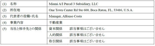 当社初の米国におけるプロジェクトとして、現地デベロッパーであるFalcone Group, LLC(本社:フロリダ州)が主導するMiami Worldcenterにおける区画の開発用地を取得いたしましたので、あわせてお知らせいたします。