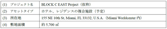 以上の当社の事業基盤および市場環境を総合的に勘案し、当社は米国市場への参入を決定し、その進出の初弾としてマイアミ中心部でホテルとレジデンスを主とした複合開発プロジェクトに着手いたしました。
