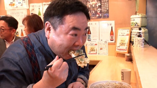 夕方5時以降は新潟名産の地酒と肴を目当てに常連客がわんさか訪れるこちらの店。塚地も常連客たちから拍手で迎えられ、ほろ酔い気分のままへぎそばを堪能!セレクトしたのは、篠山義之店長自信のかき揚げそば。かき揚げのアツアツ・サクサクの食感が、冷たいへぎそばのコシ&ツルツルの喉ごしと絶妙なハーモニーを奏でる珠玉の一品!