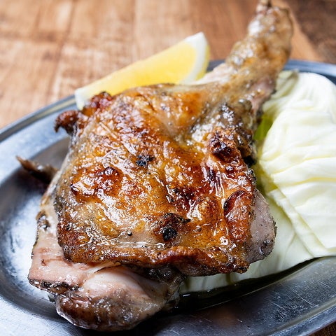 ■歯ごたえ抜群!骨付鶏もも焼き強力な炭火を用い、一気に鶏本来の旨みを凝縮!香ばしい香りとジューシーな味わいがたまらない♪お酒のおともにもぴったり◎