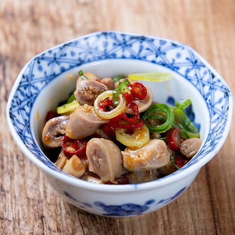 ■ピリ辛コブクロコリコリとした独特の食感がクセになる、通好みの逸品! ピリッと辛い特製ダレが絡み、噛むほどに旨味が溢れ出します。 キンキンに冷えた生ビールのお供に欠かせない、リピーター続出の酒泥棒メニューです。