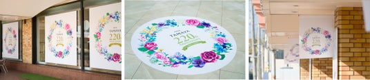 創業220周年を記念し、館全体を記念ロゴで装飾し、来館体験を一新いたしました。