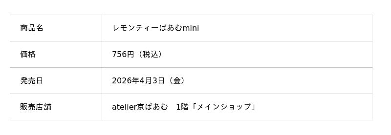 「レモンティーばあむmini」が加わることで、atelier京ばあむ限定で常時販売する「miniシリーズ」は、全3種類のラインアップとなります。既存の「京ばあむmini」「珈琲ばあむmini」に新たな味わいが加わることで、atelier京ばあむを訪れるお客様に、その日の気分や好みに合わせて選べる楽しさを提供します。