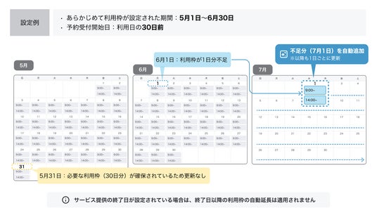 利用可能枠が不足すると自動更新され、常に予約受付可能な状態を維持する仕組み