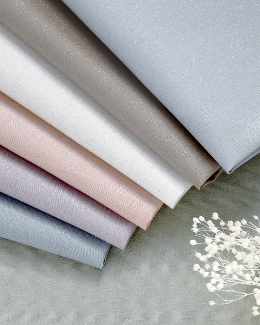 柄生地と組み合わせることを前提に、上品で主張しすぎないラメ感を設計。