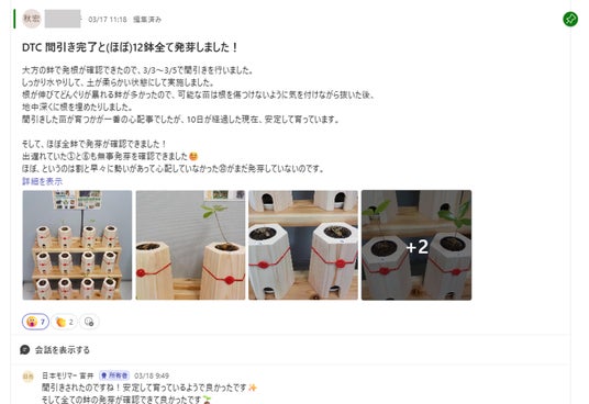 拠点や部署の垣根を越え、育苗のプロセスをリアルに発信