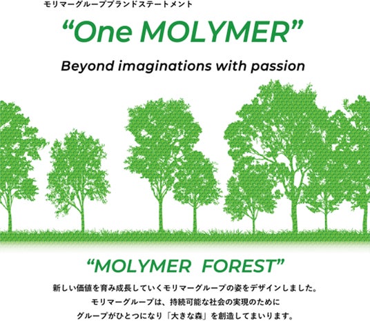 その象徴として掲げたグループブランドステートメントが「One MOLYMER」です。グループがひとつとなり、社会に対して大きな「森」のような存在として貢献していく姿を目指し、森林保全プロジェクト「MOLYMER FOREST」を推進しています。