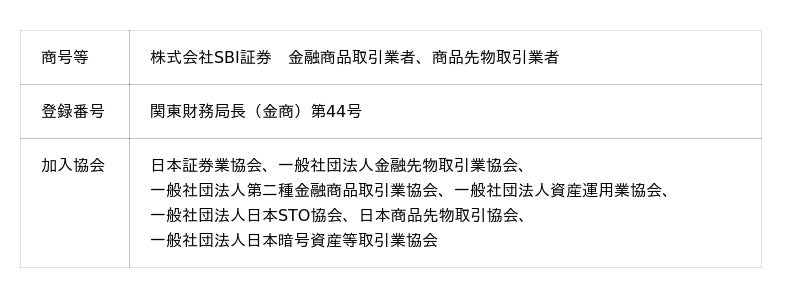 SBI証券で取り扱っている商品等へのご投資には、商品毎に所定の手数料や必要経費等をご負担いただく場合があります。また、各商品等は価格の変動等により損失が生じるおそれがあります(信用取引、先物・オプション取引、商品先物取引、外国為替保証金取引、取引所CFD(くりっく株365)、店頭CFD取引(SBI CFD)では差し入れた保証金・証拠金(元本)を上回る損失が生じるおそれがあります)。各商品等への投資に際してご負担いただく手数料等及びリスクは商品毎に異なりますので、詳細につきましては、SBI証券WEBサイトの当該商品等のページ、金融商品取引法等に係る表示又は契約締結前交付書面等をご確認ください。