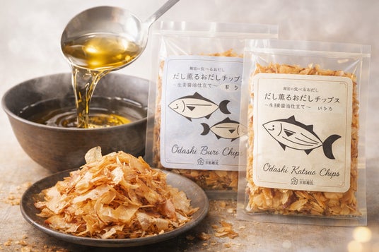 株式会社プレメーズ(本社:京都市伏見区)は“日本初のおだしのテーマパーク”を展開する京都離宮より、新商品「おだしチップス」を2026年4月8日(水)より阪急うめだ本店 地下1階ツリーテラスにて販売を開始いたします。本商品は、日本の伝統的な“出汁文化”をより手軽に、そして新しい形で楽しんでいただくために開発された“食べるおだし”という新ジャンルのお菓子です。