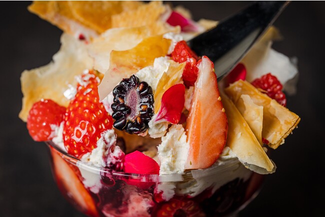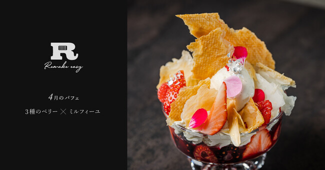 Remake easy株式会社が運営する、限られた人しか食べることができない特別なパフェと、パフェにペアリングしたカクテルを提供する会員制パフェバー「Remake easy」(リメイクイージー)から期間限定パフェ「ベリーベリーミルフィーユパフェ」が2023年4月1日(土)から4月30日(日)まで登場します。