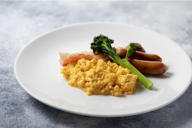 作り立て、焼き立てにこだわったメインディッシュは、世界各国でレストランプロデュースを手掛けるHIDE YAMAMOTOシェフが監修。能登の大自然の中、澄んだ空気とおいしいお水で育った味わい深くコクのある卵「能登のめぐみ」を使用しています。
