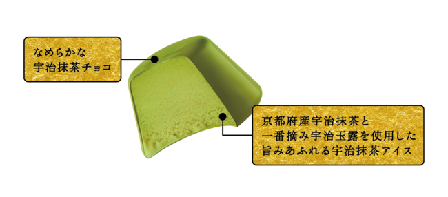 4.さらにコーティングチョコにも宇治抹茶を使用しているので、宇治抹茶アイスとあいまって、ひとつぶ食べると口の中いっぱいにあふれる抹茶の旨みをご堪能いただけます。