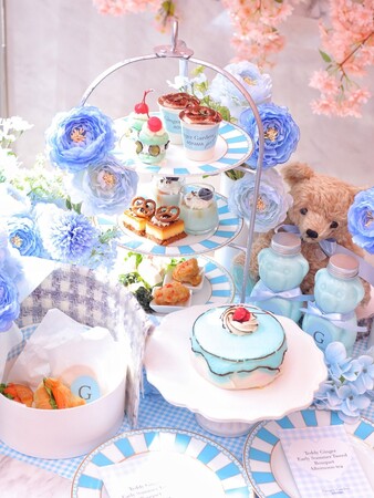 【ツイードフラワーブーケと水色】をテーマとした韓国風アフタヌーンティー