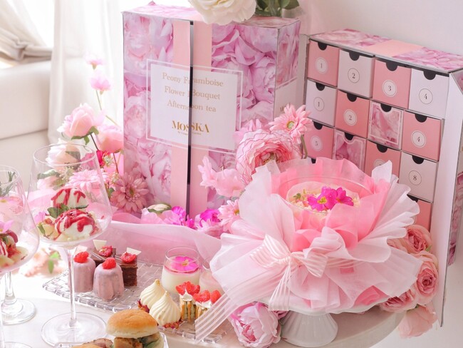 お花畑がテーマの大人の女性がワクワクするボックスアフタヌーンティー。