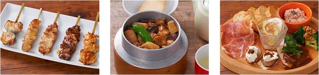 鮮度にこだわった国産鶏のやきとり、「鳥勘助」ならではの和素材をつかったバルメニューに加え、ビールにあわせたお料理も新たに提供いたします。ランチは一つずつふっくら炊き上げた羽釜ごはんや、鶏をメインとした定番メニューを多数ラインナップしております。