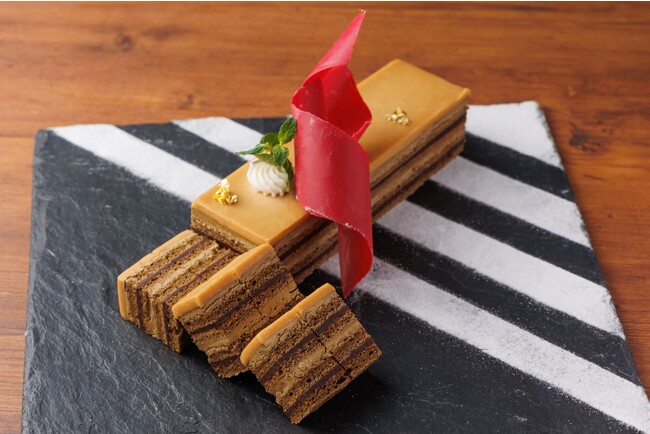 フランスの伝統的なお菓子オペラと健一自然農園の香りたかいほうじ茶パウダーをふんだんに使用しアレンジしたケーキです。