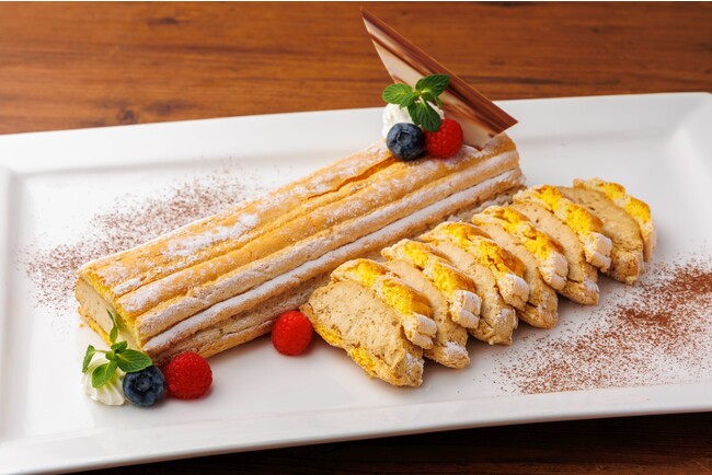 白いメレンゲ生地と黄色のスポンジ生地で組みあげ、コーヒークリームと挟んだウィーンを代表するお菓子。シンプルなのに飽きがこない味に仕上げております。