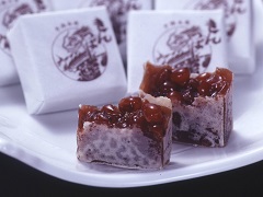 砂糖と寒天を加え、小豆の風味を引き出した餡を舟に流して四角く切り分け、薄衣をつけて一つひとつ丁寧に仕上げました。