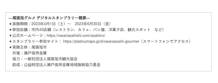 是非、市内のおいしい魅力や素敵な観光スポットをめぐる「尾張旭グルメ デジタルスタンプラリー」にご参加いただき尾張旭をたくさんお楽しみください。