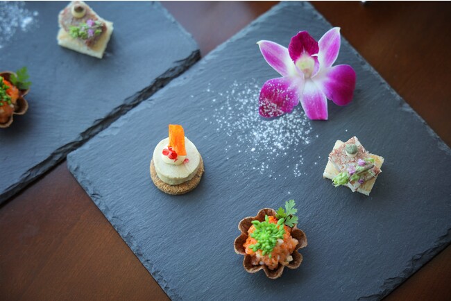 別皿でご用意するのはホテルニューオータニ幕張総料理長「小出裕之」が手掛けるカナッペ3種。