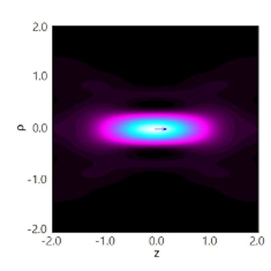 高NA(1.32)ラジアル偏光ビームの焦点位置および焦点通過時の縦波(Z波)成分の正規化強度です。強度0と1はそれぞれ黒と白に対応します。x、y、ρ、zの単位は波長です。