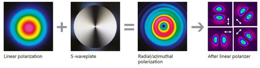 S-Waveplateの拡張版です。線偏光を高次の偏光パターンに変換し、円偏光をより高いトポロジカルチャージを持つ光渦へ変換することができます。