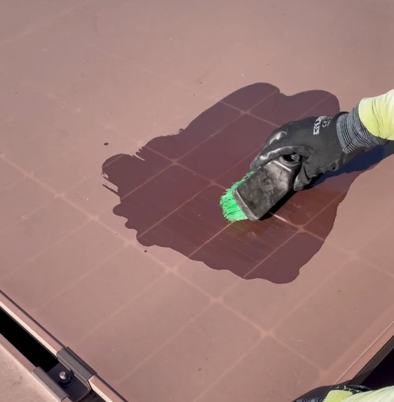 太陽光発電設備の導入拡大に伴い、メンテナンス需要は増加する一方、現場では人手不足と過酷な作業環境、そして“落ちない汚れ”の作業長期化が深刻化しています。清掃現場には3つの課題があり、- 汚れがなかなか落ちない:製鉄所周辺などで付着しやすい鉄粉や、長年の水垢・スケールなどの汚れが、通常の洗浄剤では除去に時間がかかる