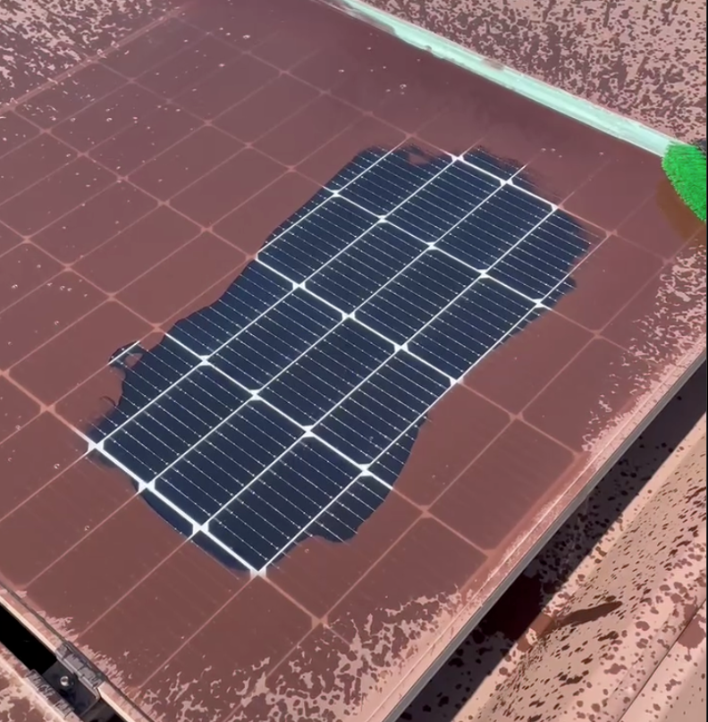 太陽光パネルに付着した落ちにくい汚れ(鉄粉)