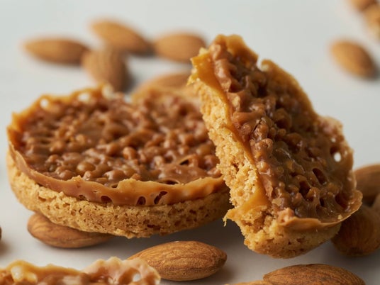 香ばしいアーモンドと蜂蜜、バターのコクが広がる軽やかな食感にキャラメルをサンドしました。