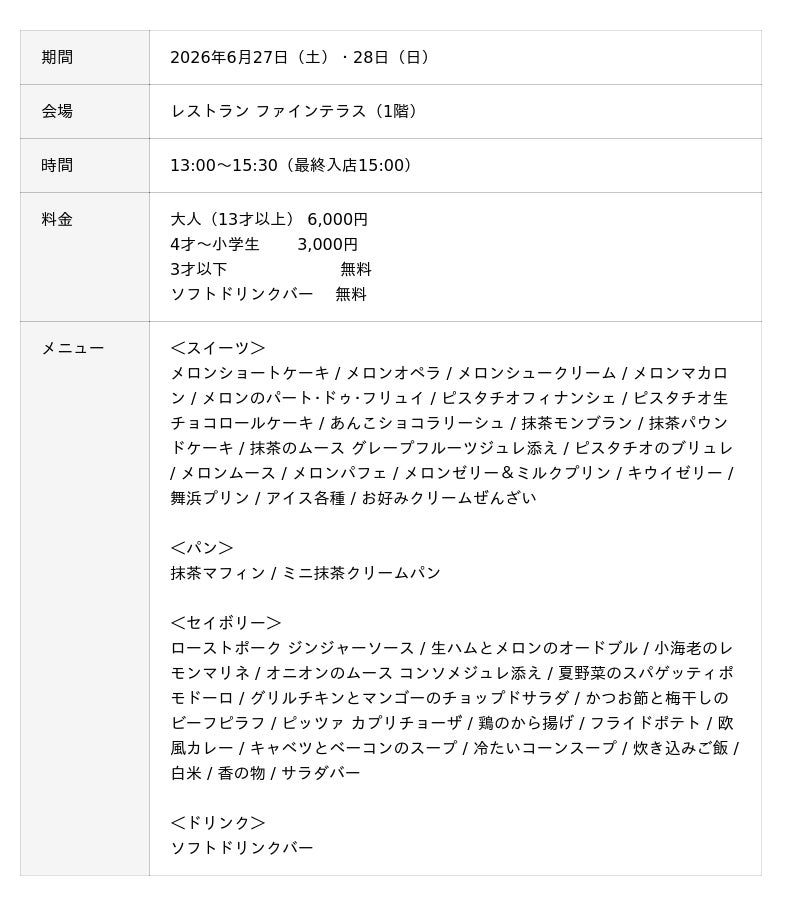 スイーツビュッフェ「Melon & Matcha」 概要
