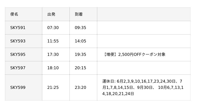 2.SKY598便(那覇20:10出発⇒神戸22:05到着)を利用時に2,500円OFFクーポンが利用可能