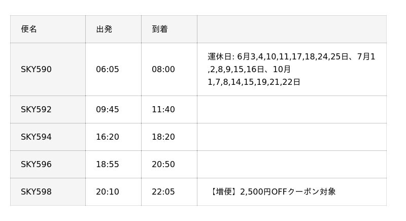 ■那覇⇒神戸 フライトスケジュール(2026年6月1日~2026年10月24日)