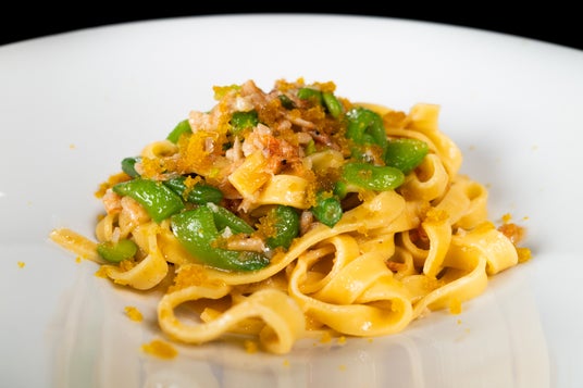 仕上げにたっぷりのカラスミをかけた、リッチで奥深い味わいをもたらす、春の締めくくりの一皿です。