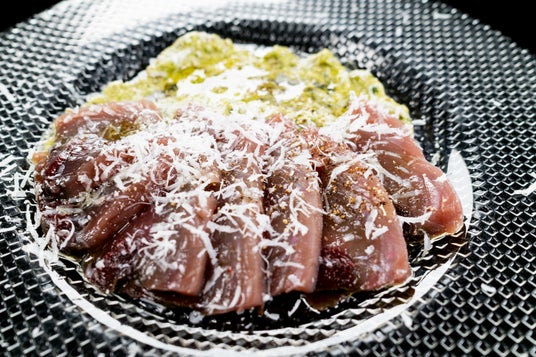 みずみずしく清々しい香りをまとったペースト状のソースが、チーズのコクとともに鰹の旨みを引き立てます。