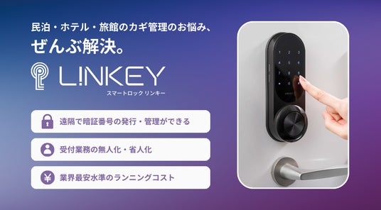 UMEが提供するスマートロック「LINKEY」シリーズは、暗証番号によるキーレス入室や鍵管理の効率化を実現し、宿泊施設や民泊事業者を中心に多くの導入実績があります。