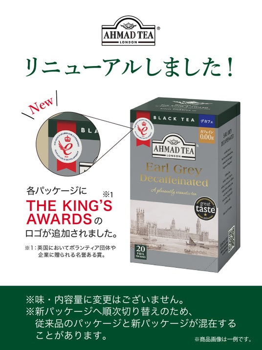 キングス・アワード受賞に伴い、日本国内では現在、一部商品パッケージをキングス・アワード公式エンブレム入りデザインへ順次切り替えております。