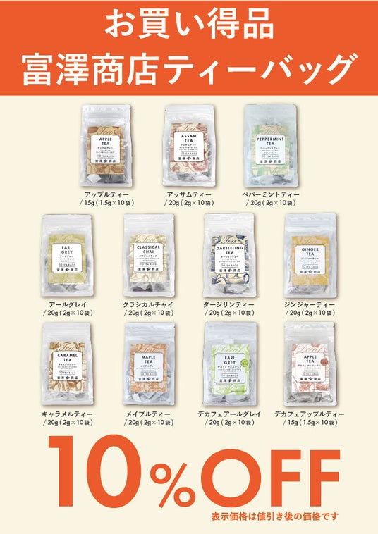 紅茶ティーバッグシリーズが10%OFF!手土産としても選びやすい、人気の紅茶ティーバッグシリーズをオープニング期間中【10%OFF】にて販売いたします。