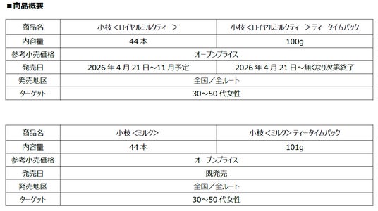 ミルキーなチョコと紅茶の香りがやさしく広がる春のティータイムにぴったりの「小枝<ロイヤルミルクティー>」の発売とキャンペーンにより、お客様に笑顔を提供してまいります。