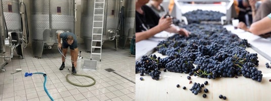 ▲ワイナリーでは徹底的な清掃を行い、汚染を極限まで削除。選果は粒単位で緻密に管理