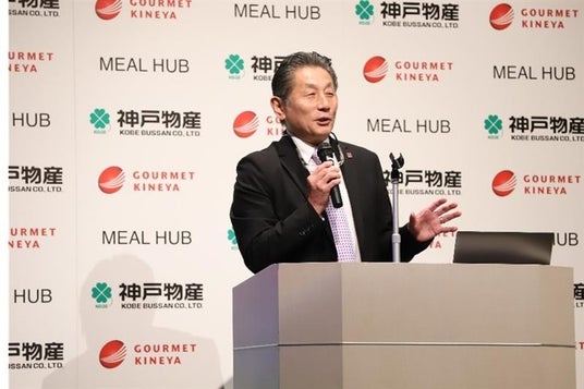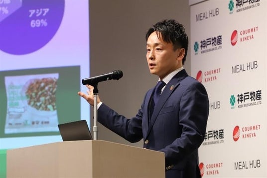 株式会社神戸物産 代表取締役社長 兼 株式会社MEAL HUB代表取締役社長となる沼田 博和より、合弁会社「株式会社MEAL HUB」設立の背景について紹介。「機内食事業は世界で高い成長性の見込まれる事業であり、特に今回のM&A対象であるLSG APAC※1の属するアジア地域は高い成長が見込まれる。今後は合弁会社としてこの成長見込みを上回る成長を計画したい。また、M&Aにより自社の強みである業務スーパー・惣菜・外食事業の海外強化の足掛かりにすることも視野に入っている。具体的には国内27工場の自社PBを機内食へ提供や、50ヵ国以上ある海外サプライヤーの更なる強化も今回のシナジーとして期待している。」と述べ、両社の強みやノウハウを最大限に活かしながら、新たに取り組む機内食事業の強化を図っていく方針を示しました。※1:機内食事業を世界で展開するLSGグループのアジアパシフィック部門