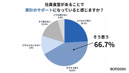 また、当社の社員食堂を導入している企業の従業員を対象に実施した調査(※2)によると、「社員食堂があることで家計のサポート(実質的な手当)になっていると感じる」と回答した人は66.7%と、約3人に2人にのぼりました。
