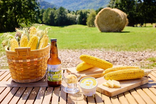 ファームエリアに設置された焚き火台では、とうきびを自分好みに焼いて味わう体験を提供します。焼きあがったとうきびに、バターを添えることで、とうきび本来の甘味とバターのコクが口いっぱいに広がる、とても贅沢な味わいです。また、夏の屋外でとうきびを味わうのにぴったりな、3種類のクラフトビールを提供します。その中でも「MILK HOP」は、IPA(インディア・ペールエール)とトマム牛乳を合わせた、まろやかな口当たりとベリーのような酸味が特徴です。さらに、ファーム星野の乳製品生産過程で出る脱脂乳を原料とする「モ~ッたいないアイス」には、夏限定のとうきび味が登場。とうきびの芳醇な香りが広がり、さっぱりとした後味が暑い夏に最適です。
